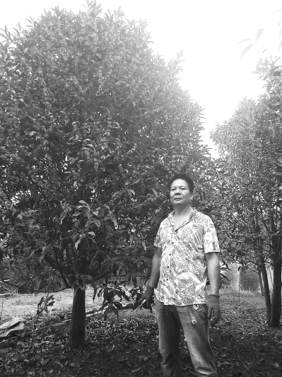 这10年来,他与山为伴,不辞辛劳,在老矿山上栽植了丹桂、金桂等桂花树种900多亩,有各类桂花3万多株、苗木16万株;栽种近2万株茶花、玉兰、樱花等,成活率达到95%以上,并套种了红蜜柚等果树。